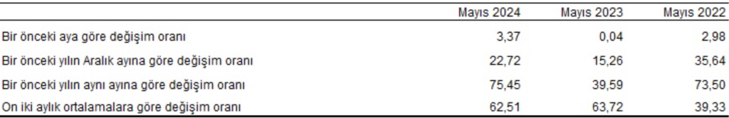 2024 Haziran ayında TÜİK tarafından açıklanan diğer TÜFE verileri ise şu şekildedir: