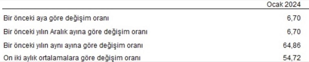 2024 Şubat ayında TÜİK tarafından açıklanan diğer TÜFE verileri ise şu şekildedir: